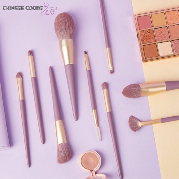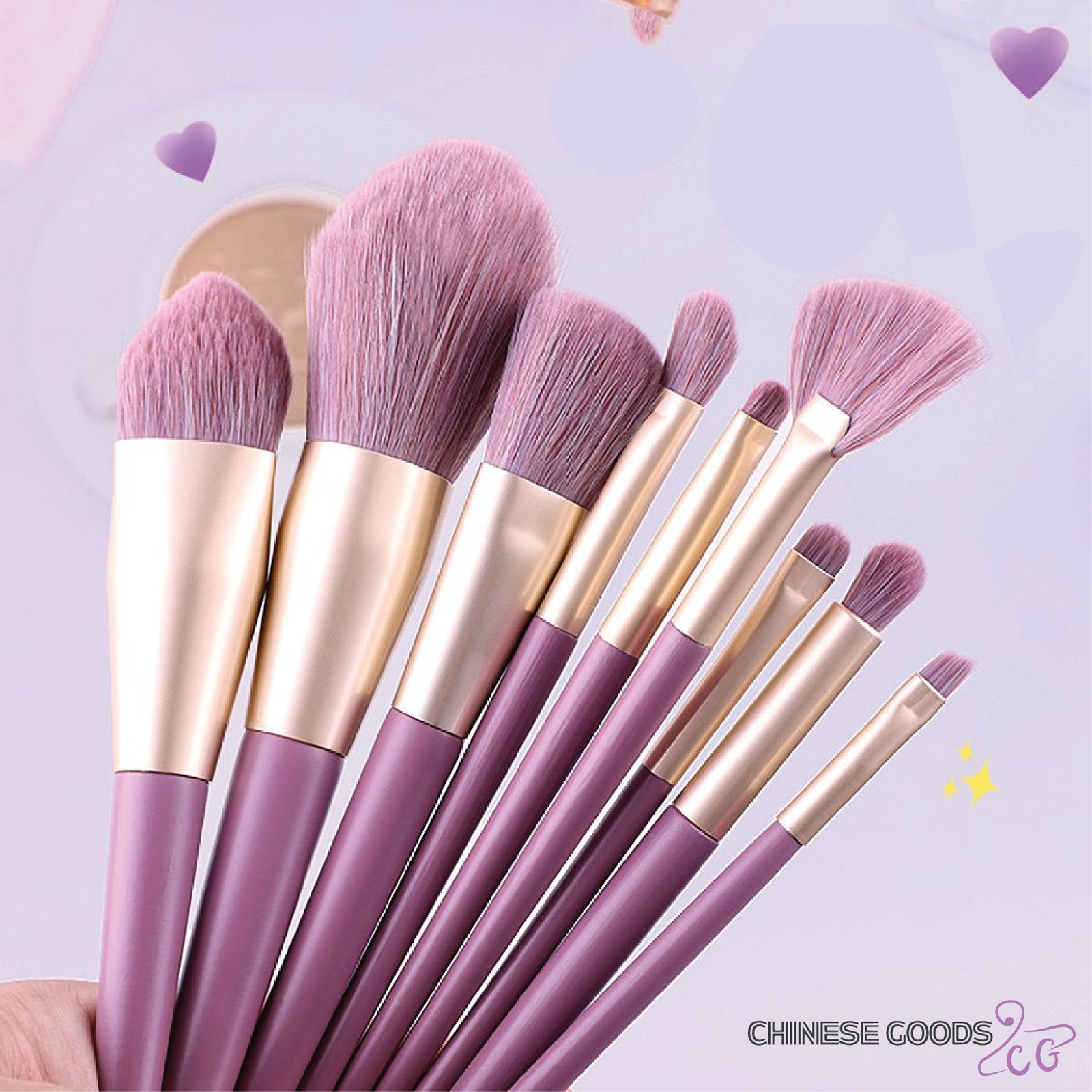 9 Pieces Purple Makeup Brush Set. Loose Powder Brush Eye Shadow. Brush Foundation Brush Portable Beauty Brush Makeup Tool