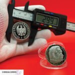 কয়েনের প্রযুক্তিগত স্পেসিফিকেশন (আসল কয়েনের স্ট্যান্ডার্ড মাপকাঠির উপর ভিত্তি করে; রেপ্লিকা হিসেবে সামান্য তারতম্য হতে পারে)