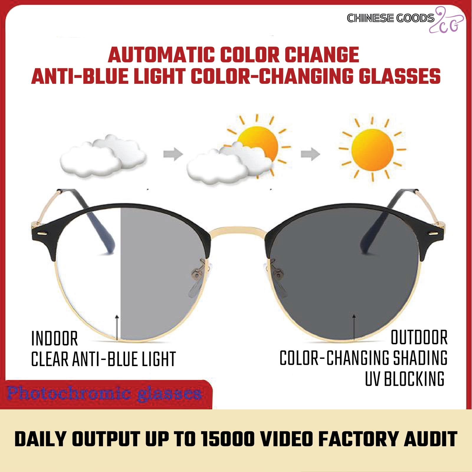 New fashion Metal Black fream Color changing anti blue light glasses for men and women. with glass bag for free