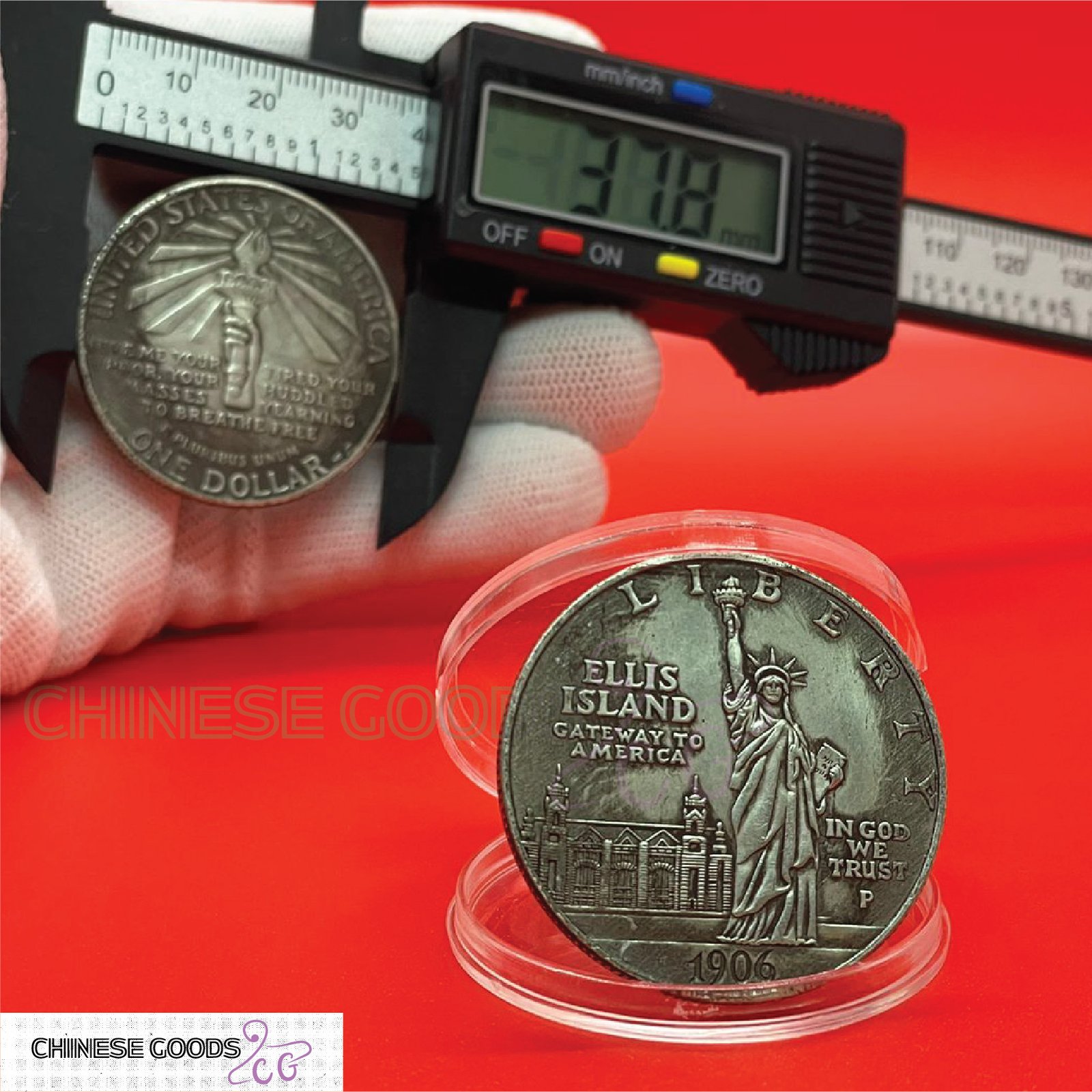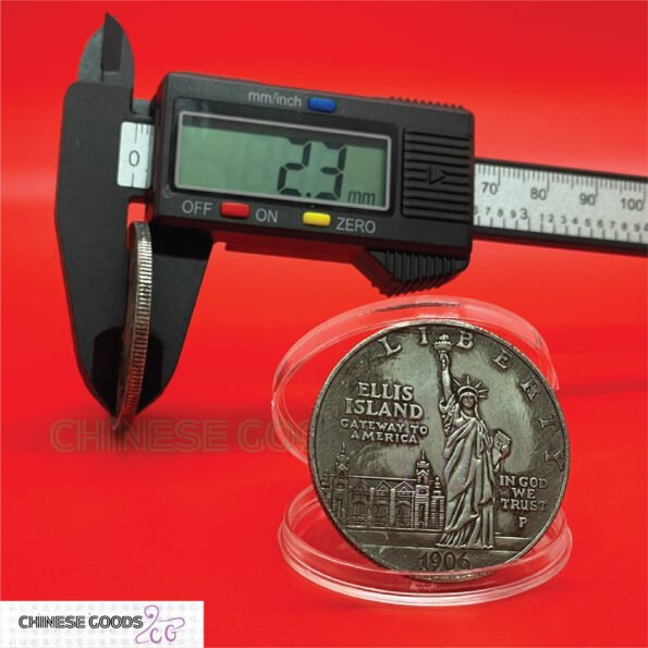 এই কয়েনটি মার্কিন যুক্তরাষ্ট্রের। 1906 সালে নির্মিত এই কয়েনটি Ellis Island-এর ইতিহাসকে উদযাপন করে, যা 1892 থেকে 1954 পর্যন্ত আমেরিকায় অভিবাসীদের প্রবেশদ্বার হিসেবে কাজ করেছিল।