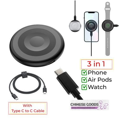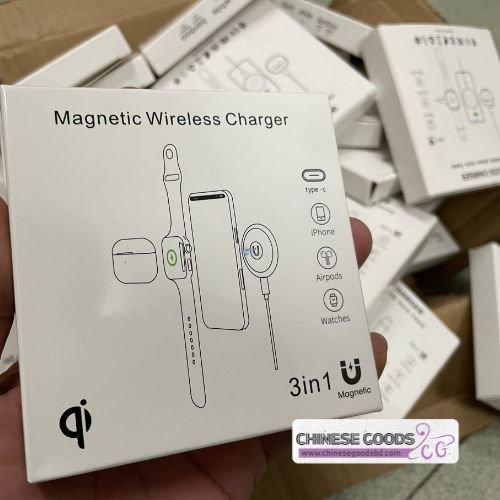 সুপার ফাষ্ট ৩ ইন ১ ম্যাগনেটিক ওয়্যারলেস চার্জার – দ্রুত এবং সুবিধাজনক চার্জিং সল্যুশন!