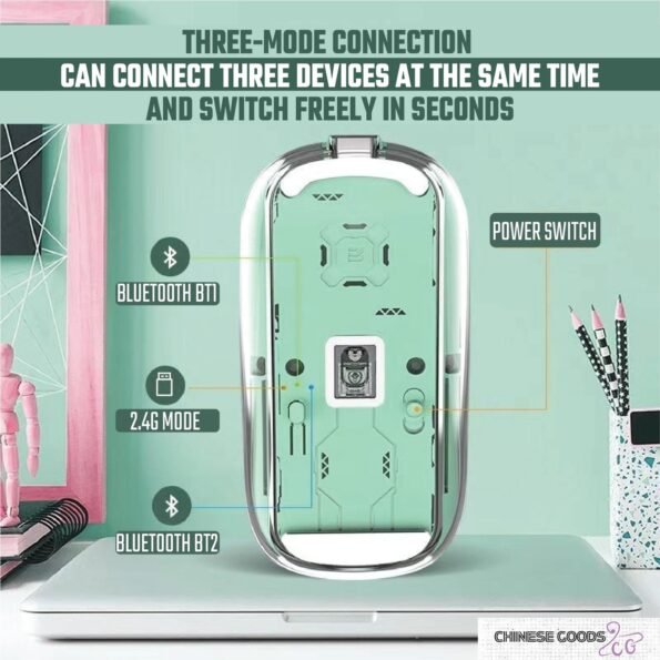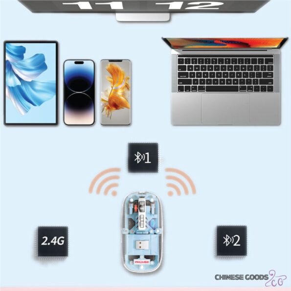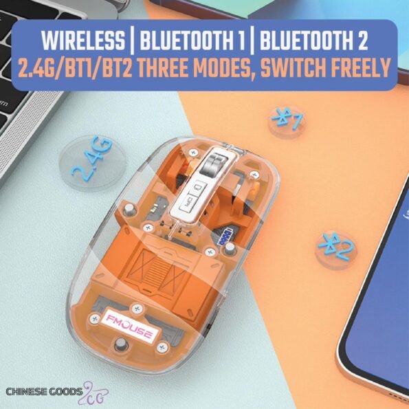 Transparent wireless mouse. three mode office optical gaming mouse. silent mouse and rechargeable bluetooth mouse